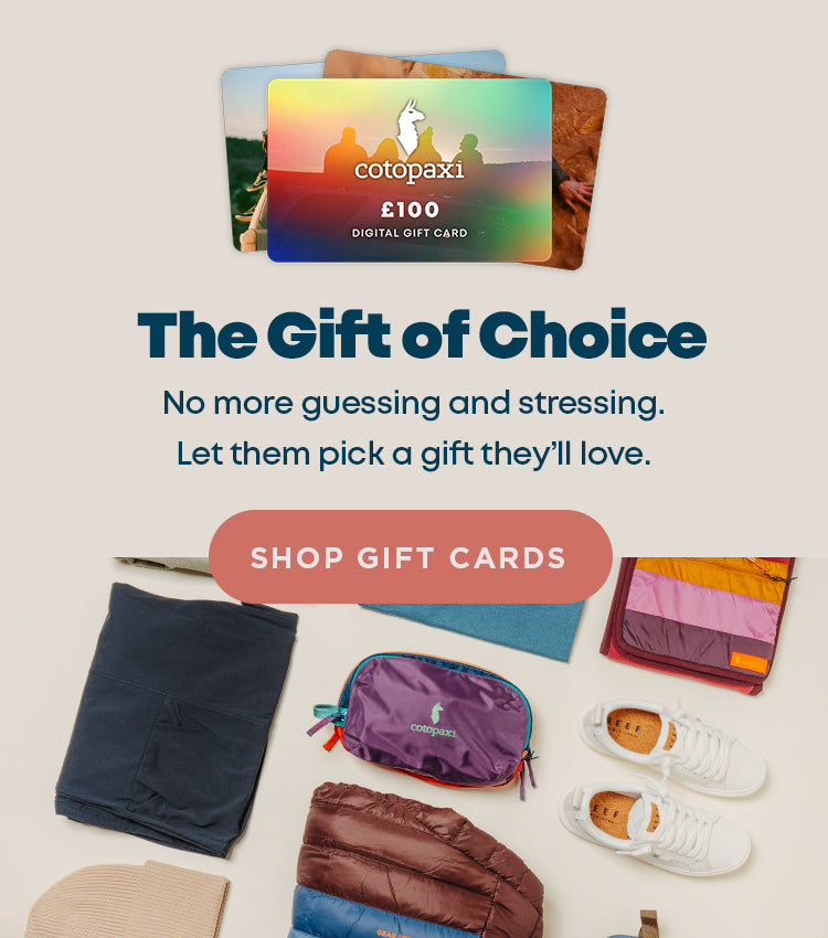 Want to keep it flexible? Give the gift of choice with a Cotopaxi E-Gift Card and let them pick their favourite colour and style!'