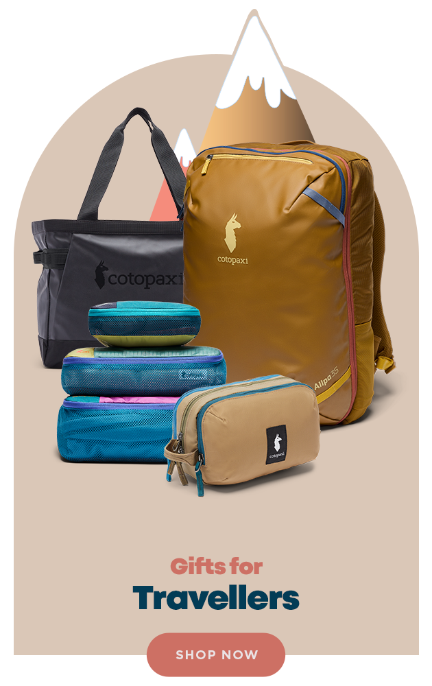 Discover our classic Cotopaxi Christmas gifts, from the iconic Allpa Travel Pack to our one-of-a-kind Del Dia packs, perfect for any adventure - big or small. Our thoughtful gifts under £50 like the Kapai Hip Pack, Cubo Travel Cubes & Organisers, mittens and fleece scarves make for the perfect stocking fillers - ideal for travel, every day use, or winter escapes.